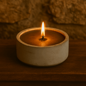 Concrete Candle – Elegance Elevate your space with our handcrafted  concrete candle — where raw texture meets refined design. Cast in a striking round form, this piece blends brutalist beauty with minimalist sophistication. The smooth matte finish and clean  lines create a sculptural presence, while  cotton wicks offer a balanced, ambient glow. Infused with our…